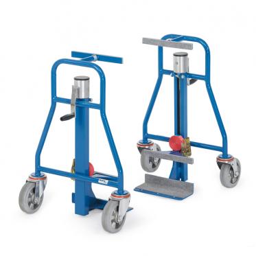 Häufig müssen Lasten zunächst angehoben, umgesetzt oder von Paletten/Sockeln gelöst werden, bevor sie sicher auf den Treppensteiger kommen. Dafür setzen wir – je nach Auftrag – folgende Hilfen ein.
