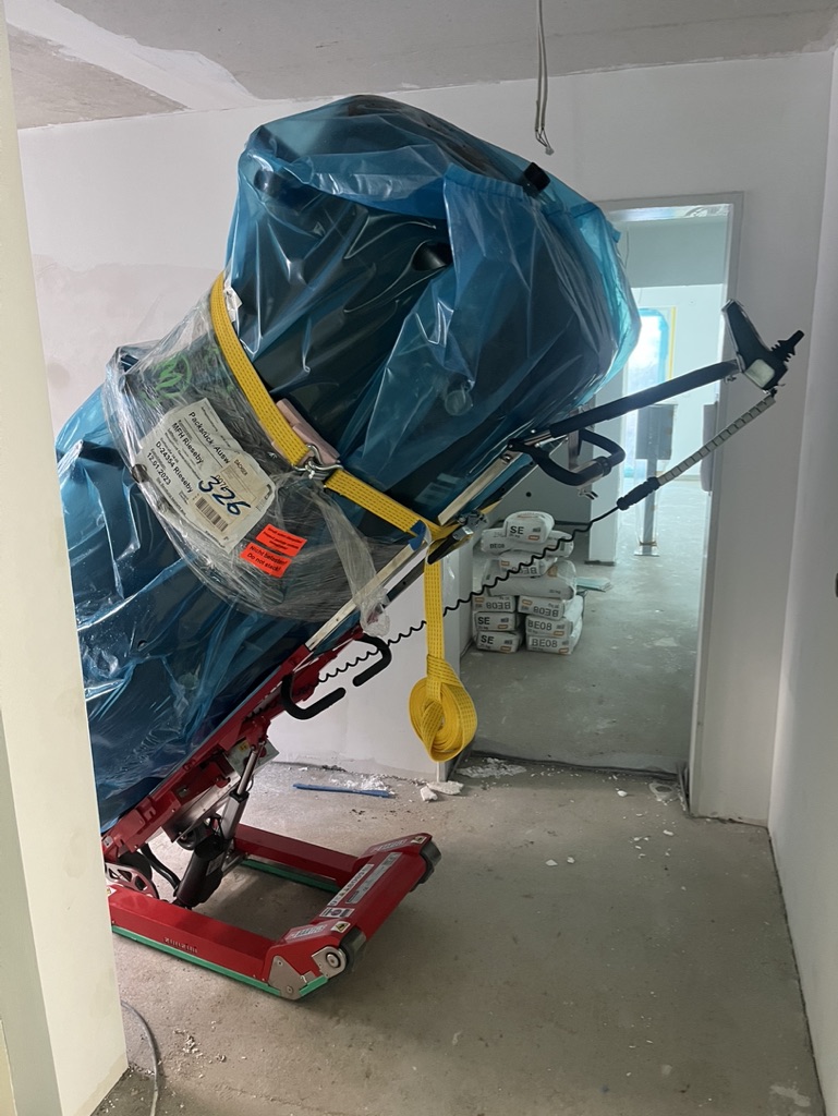 Sehr schweres Laborgerät – Transport in ein Polizeigebäude.